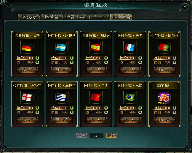 喜迎世界杯的到来,异宝斋超值限购将在世界杯期间限时出售各主要强国旗帜,欢迎大家选购。